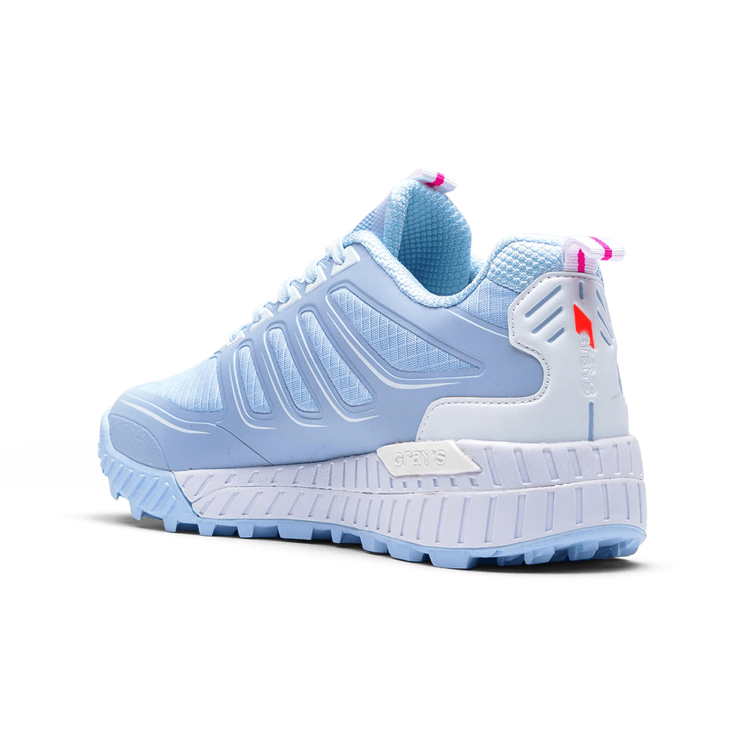 The Grays Raid 2.0 Sky is the newest shoe to be released by Grays Hockey. The Raid 2.0 hockey shoe is the perfect balance of lightweight flexable feel of a trainer while having the structure and support of a traditional hockey shoe. The Grays Raid hockey shoe is an elite shoe within the Grays Hockey range.